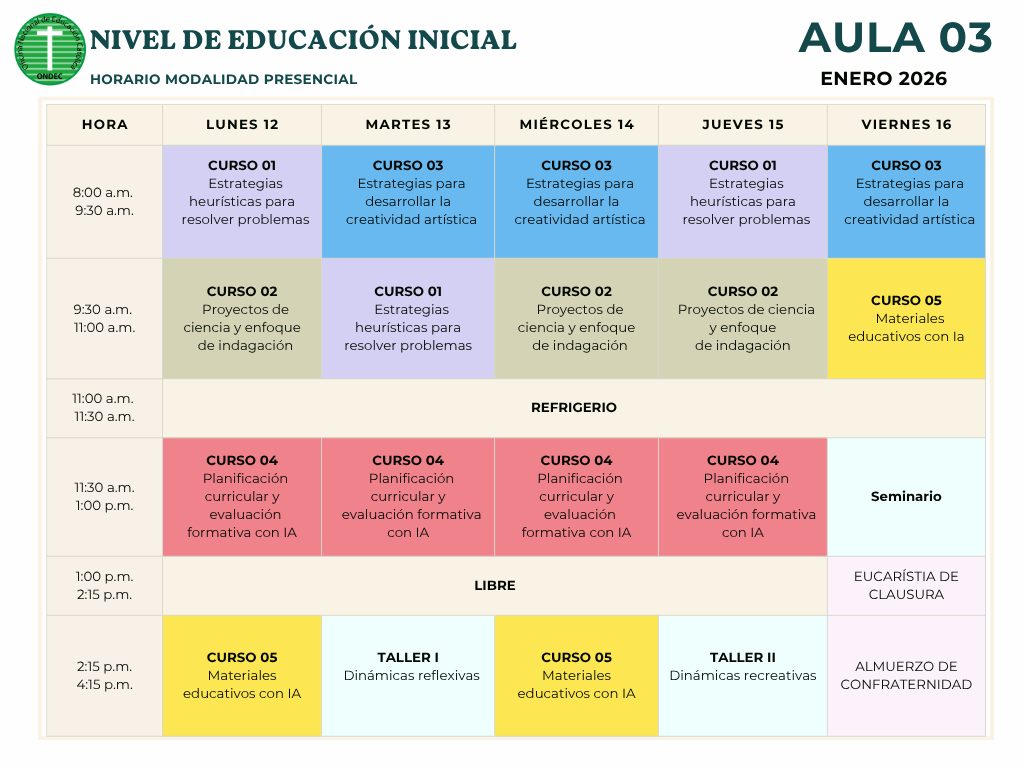 Cursos para los 3 niveles: inicial, primaria y secundaria